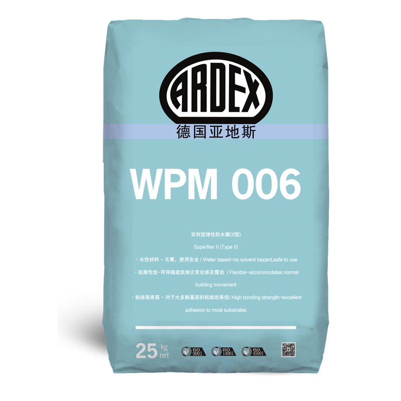 ARDEX WPM 006 (II 型) 是一種雙組份、高柔性的防水膜,使用于潮濕區(qū)域,如浴室、陽臺、露臺、盥洗室等地方的牢固耐用的涂布式防水層。